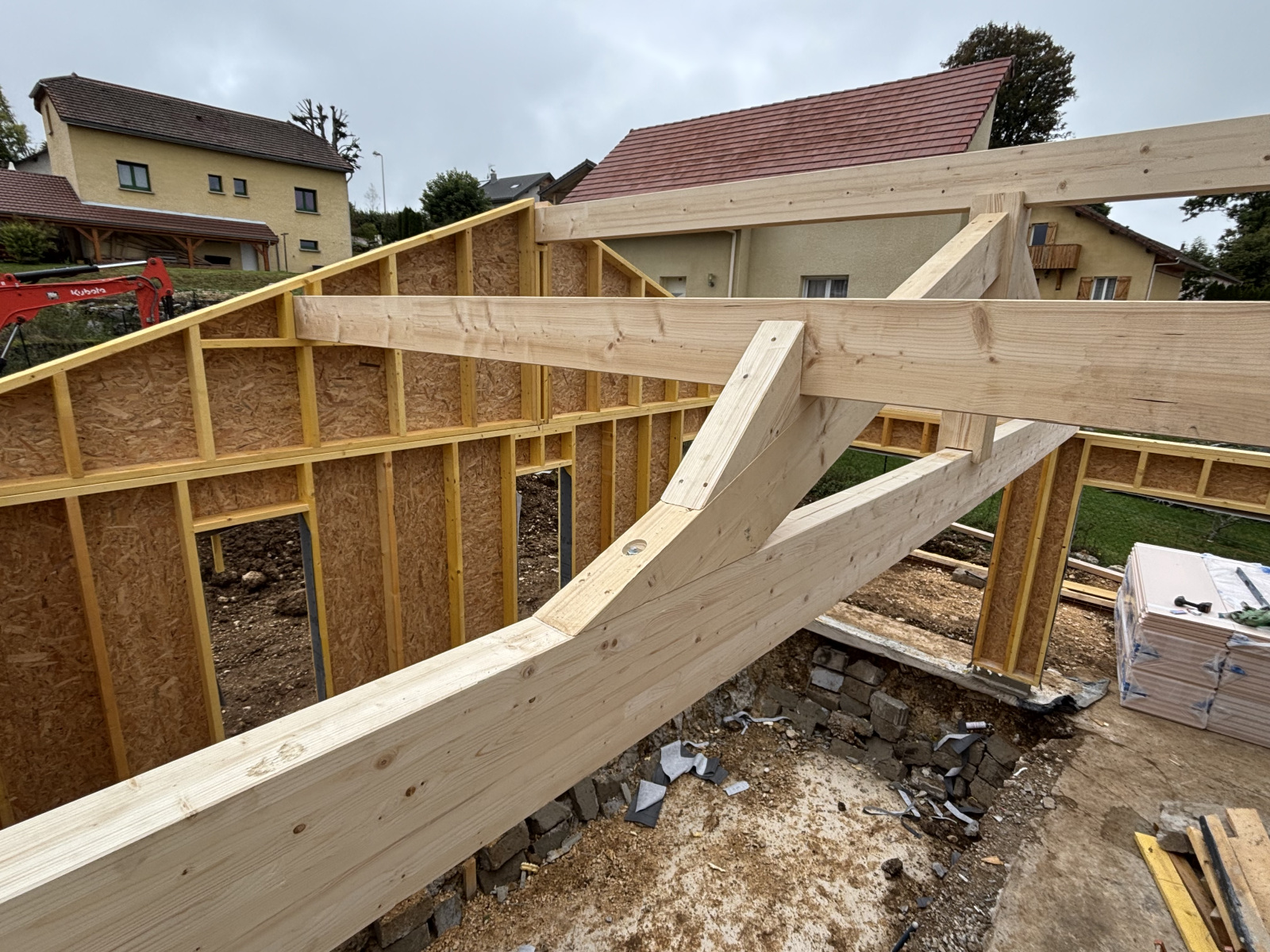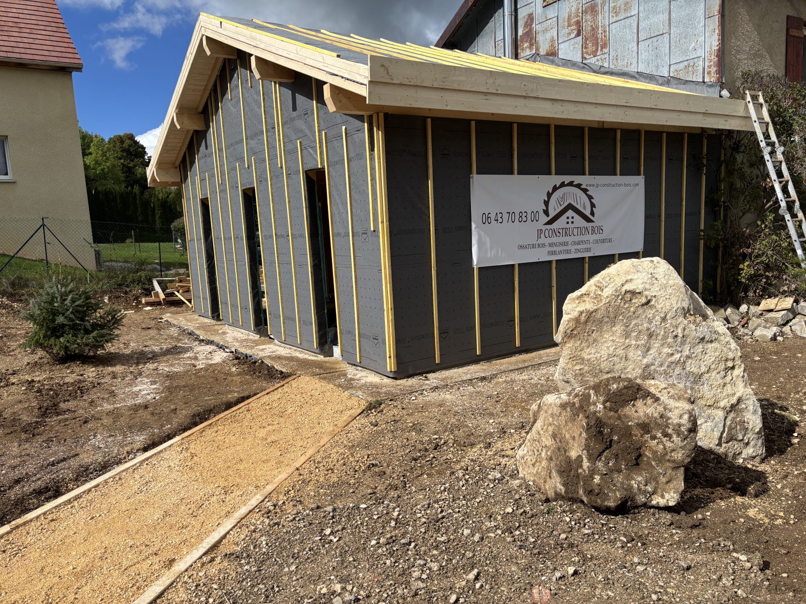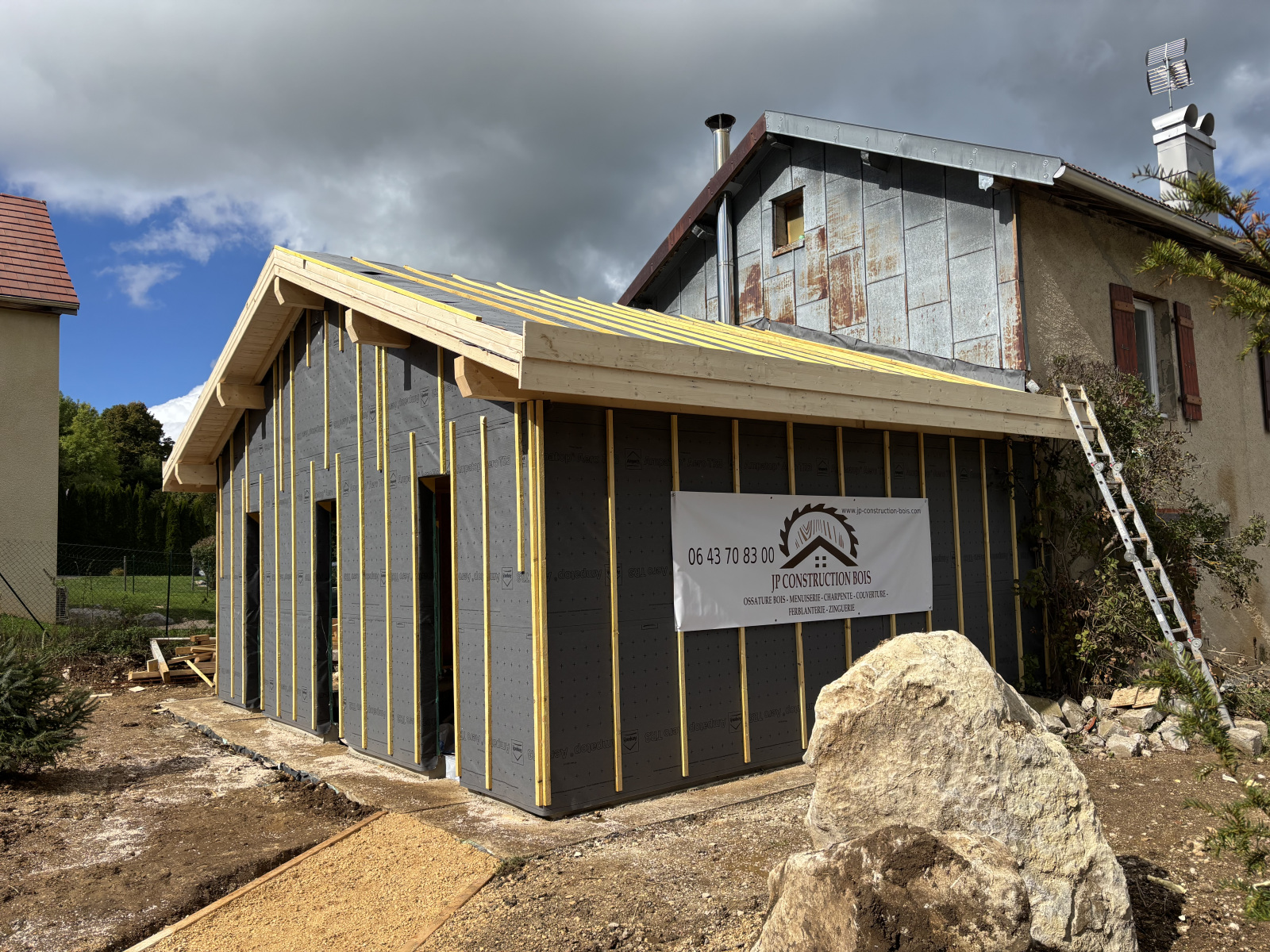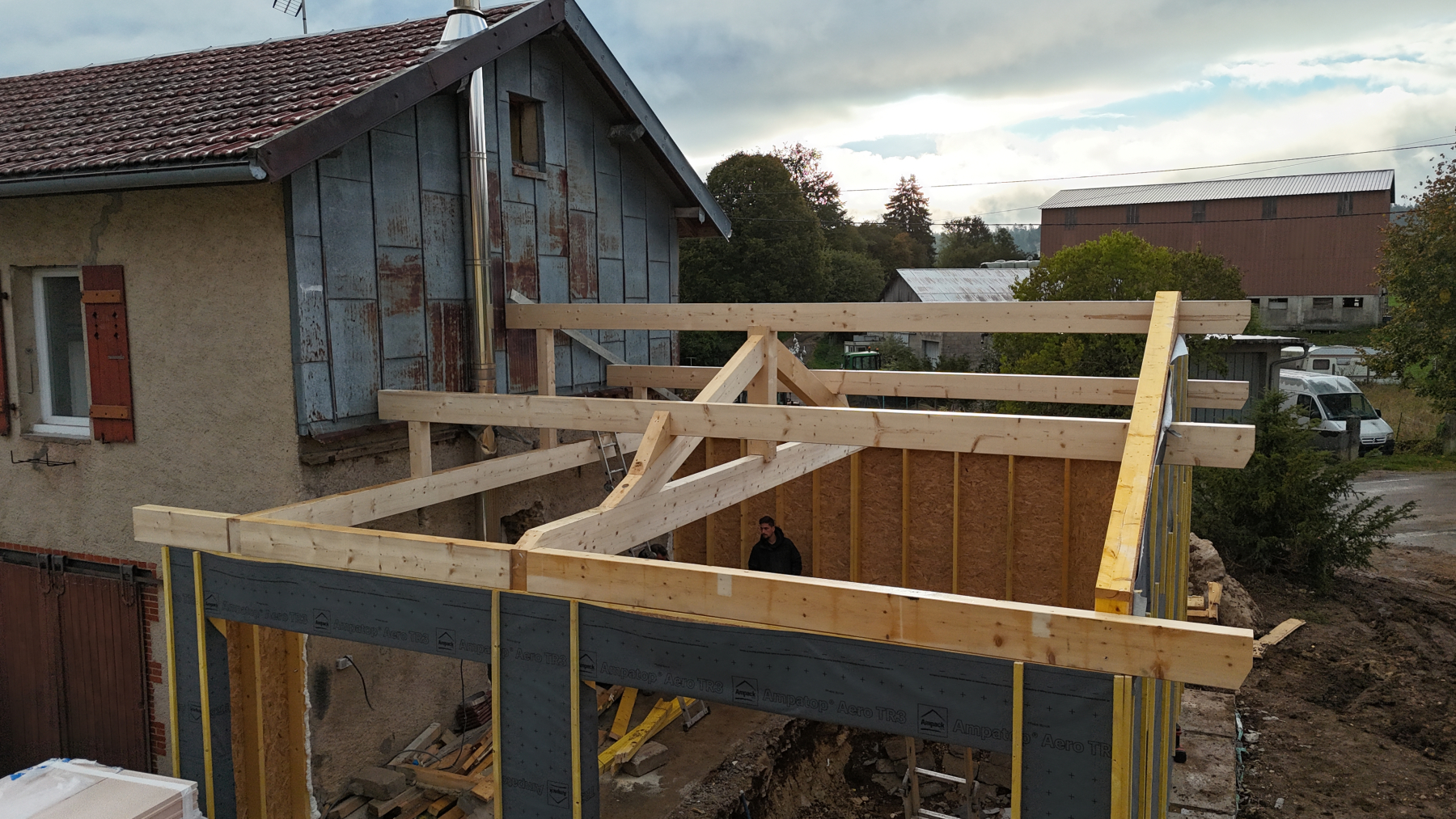 Extension de maison en ossature bois, de plain-pied et entièrement isolée pour un confort optimal. Ce nouvel espace lumineux se distingue par sa charpente apparente, alliant authenticité, esthétisme et performance énergétique. Une réalisation chaleureuse et contemporaine, parfaitement intégrée à l’existant.