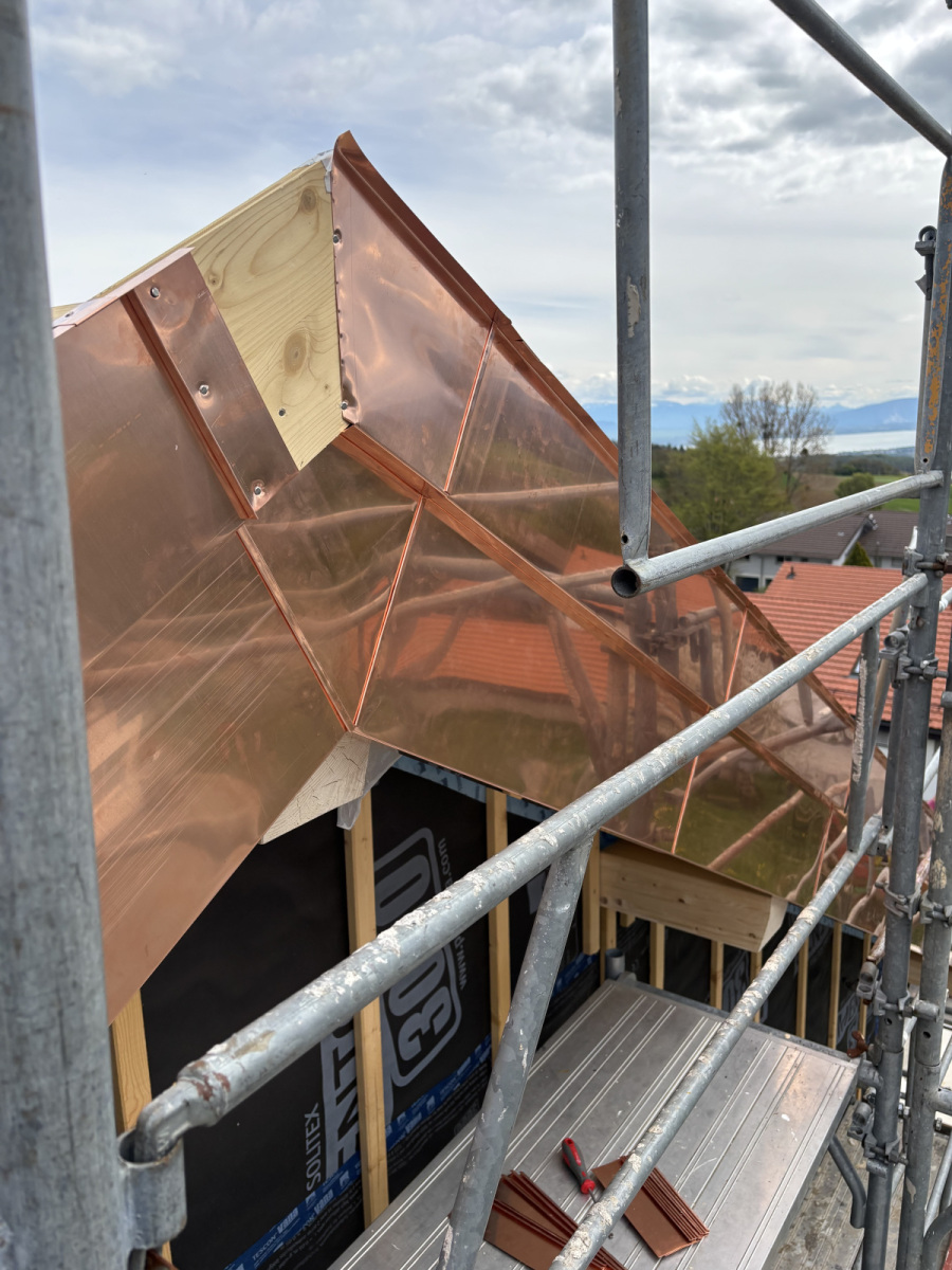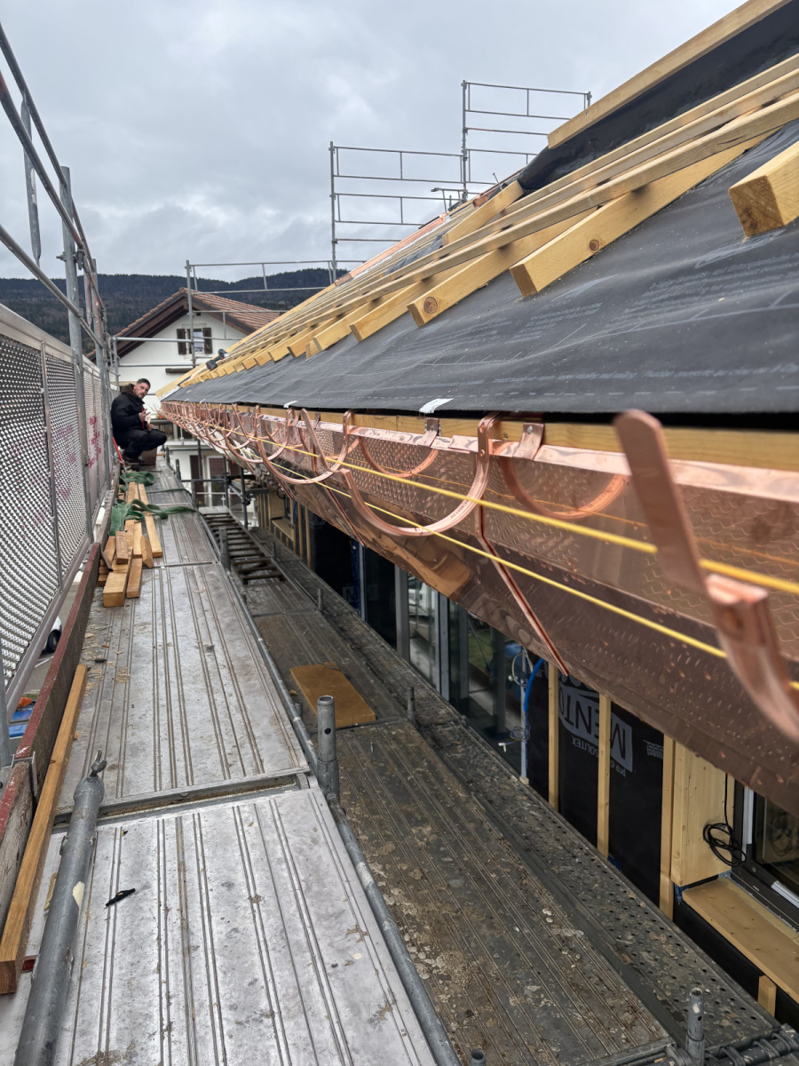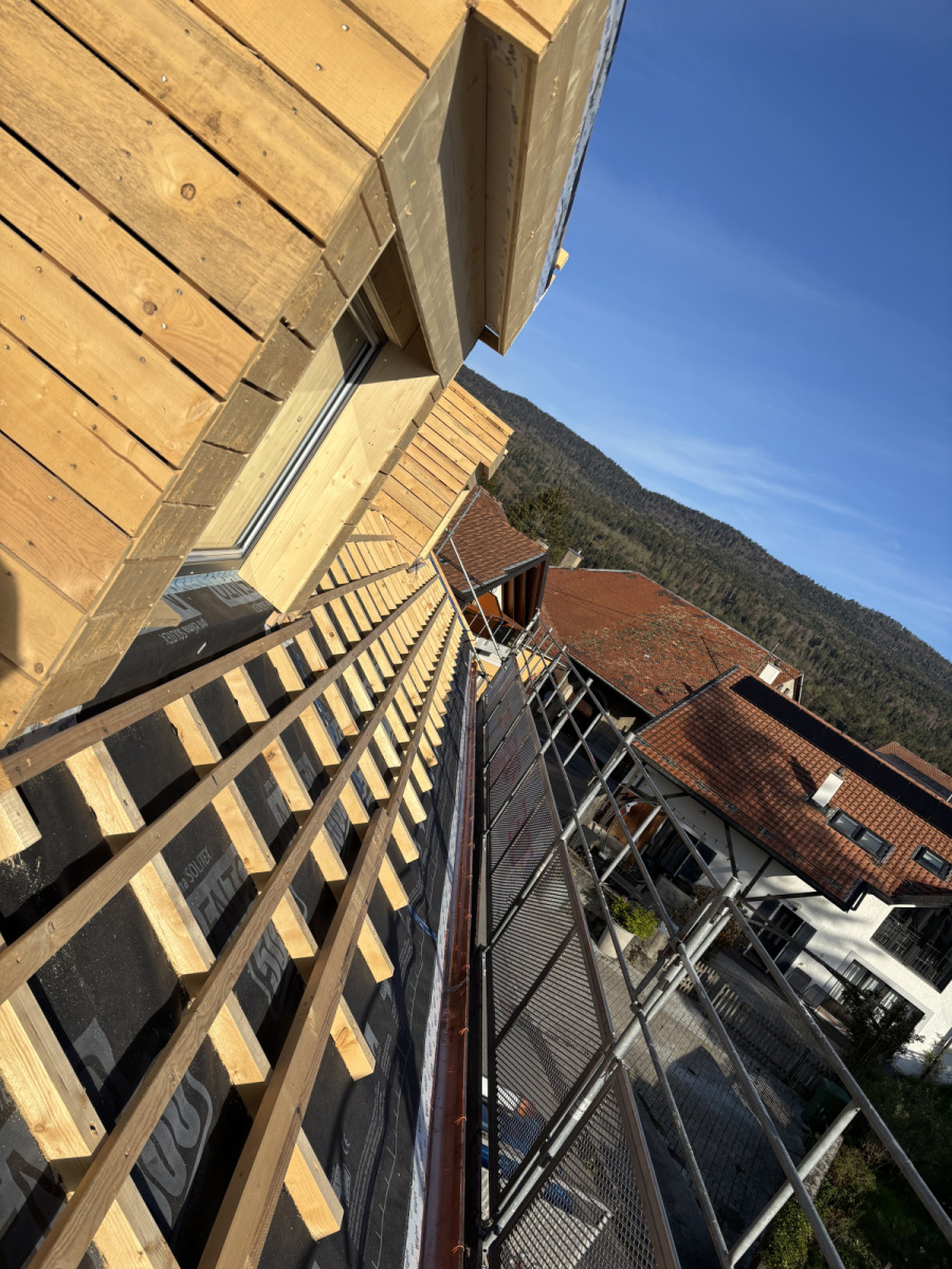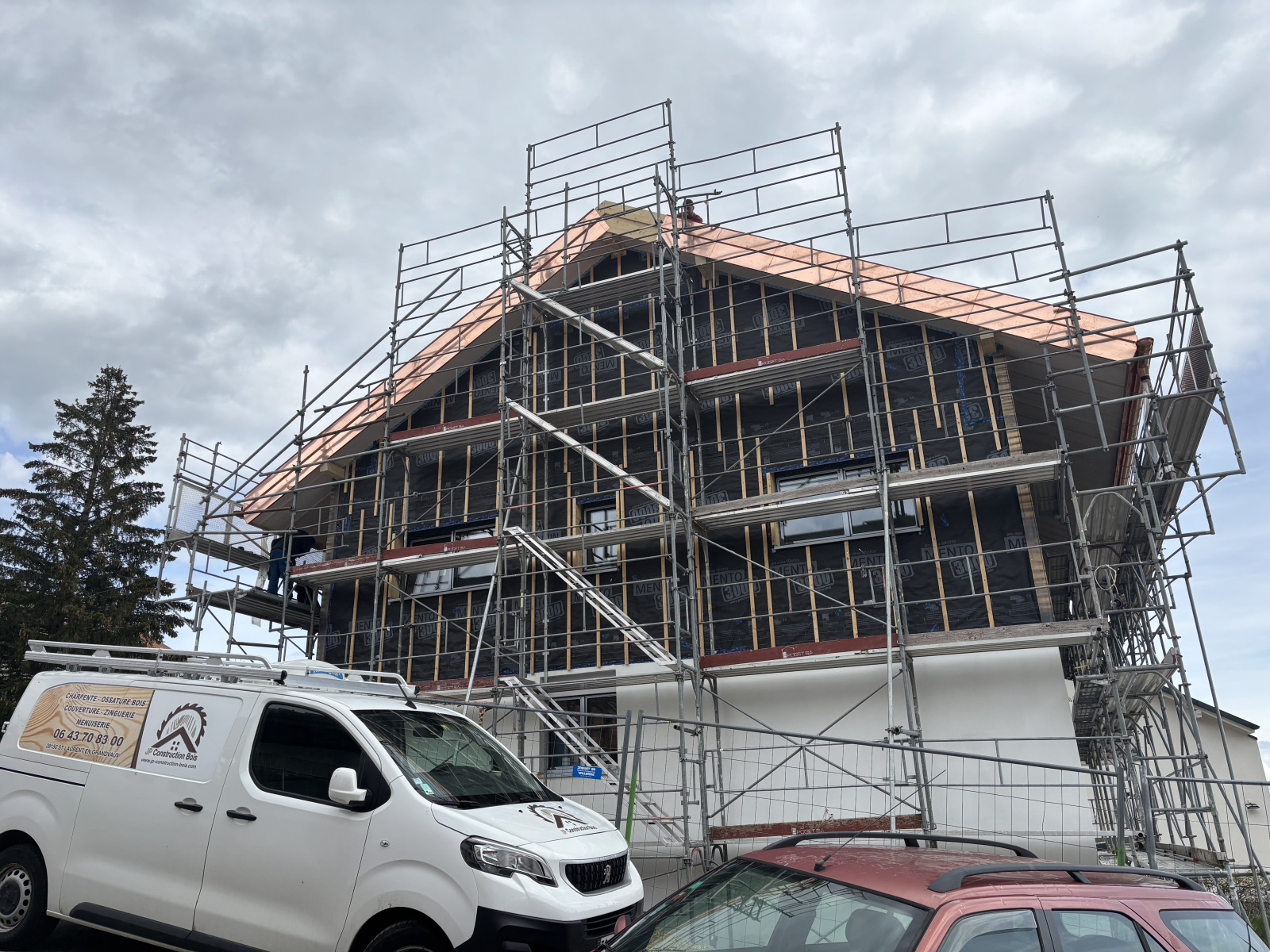 Rénovation complète et isolation extérieure d’un bâtiment, avec toiture tuiles et finitions cuivre. Les murs ont été isolés par l’extérieur et habillés d’un bardage CanExel pour un rendu moderne, durable et une excellente performance énergétique. Un projet alliant esthétique, confort et qualité des matériaux.